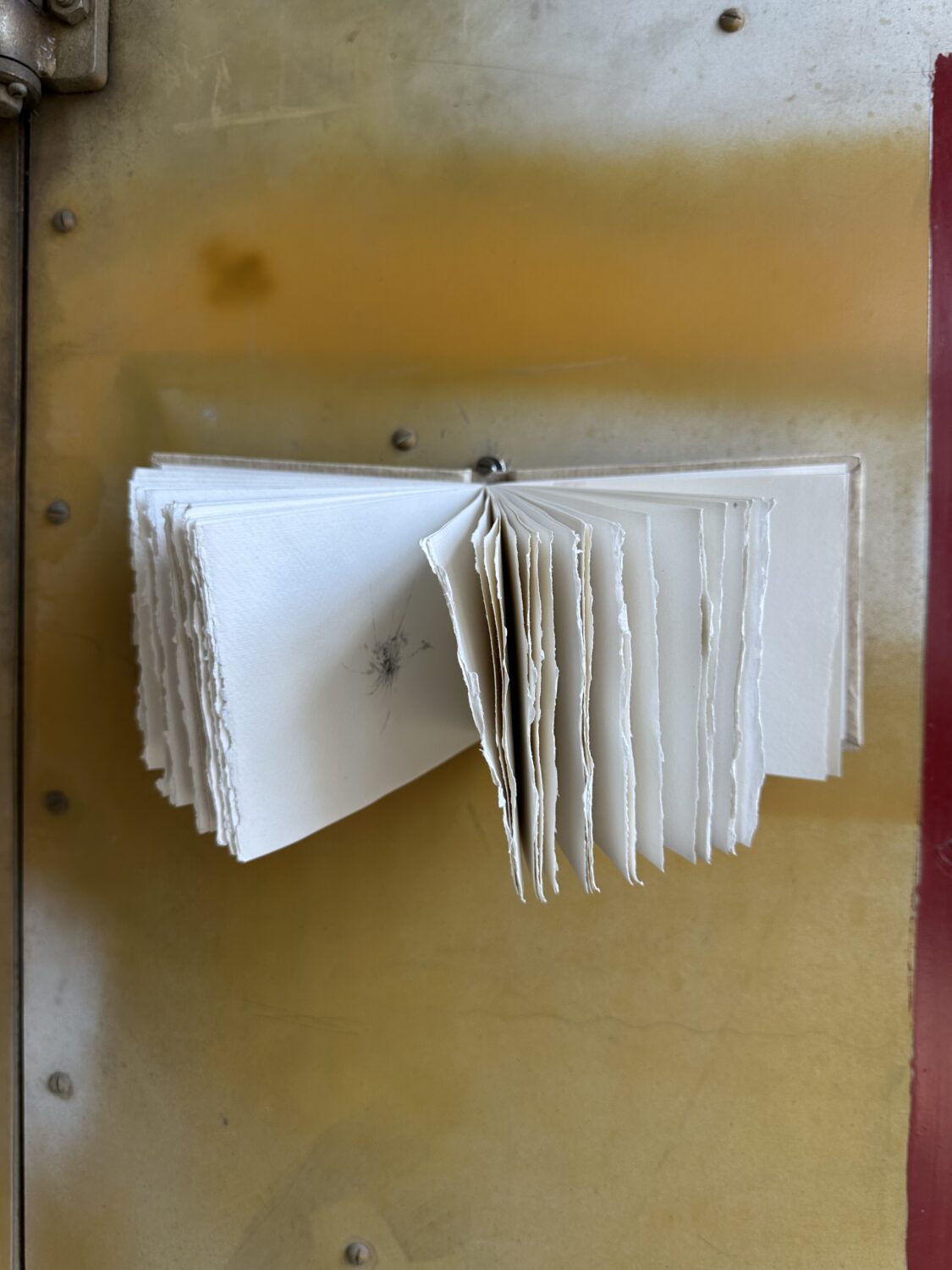 Janina Haapanen, Pala ajatusta, 2020, lyijykynä luonnoskirjalla, 13 cm x 32,5 cm x 1,5 cm