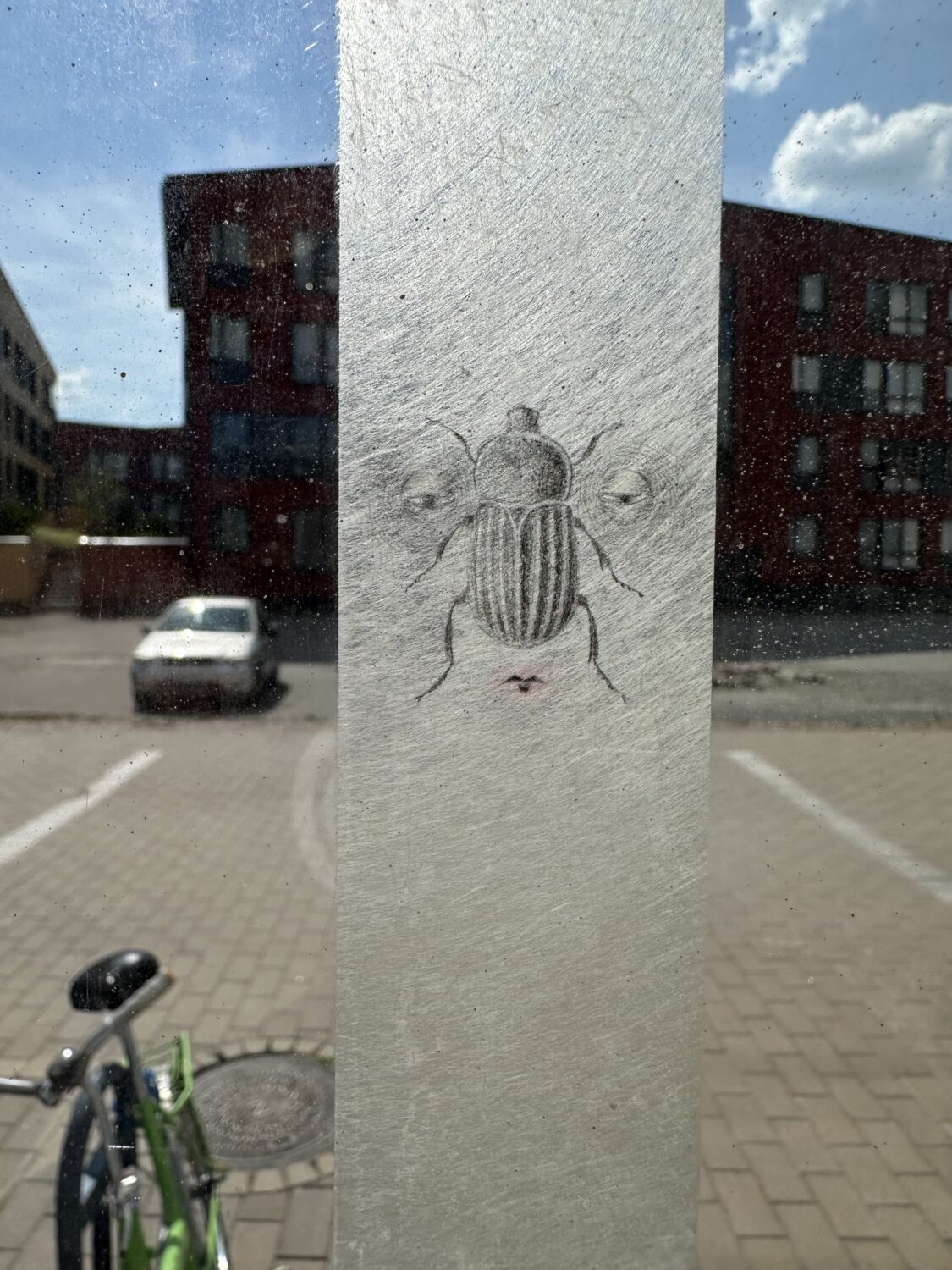 Piirrosjälki asettuu maalauksellisen laveerauksen päälle. Piirustuksesta puheenollen, miten termin määrittelisi? Onko piirustus aina paperille tehty? Ei aina. Onko piirustus kynällä tehty, ”kuivalla” medialla? Ei aina. Onko piirustus riippumatta tekniikasta aina muodoltaan kapeiden viivojen teos? Vaikuttaa siltä, mutta miten paksu viiva ei enää ole viiva? Onko viiva kehollinen määre? Vaikuttaa siltä. Perinteisen pienen paperityön hennot viivat peittää suurennoksessa pintaa kuten maalaus. Joten viisi metriä kertaa viisi metriä kookas pinta vivoille, joiden paksuus voisi vaikka olla 10 cm, olisi piirustus? Katkoviivat ovat selkeä merkki piirustuksesta, vai onko määrällistä rajaa? Maalausta ja piirustusta voi sekoittaa. Piirrosjälki voi olla määrällisesti fragmentti. Linjanveto sen sijaan voi myös olla poliittinen veto. Politiikasta ja kaikesta muustakin voi puhua katseen sanastoilla.
