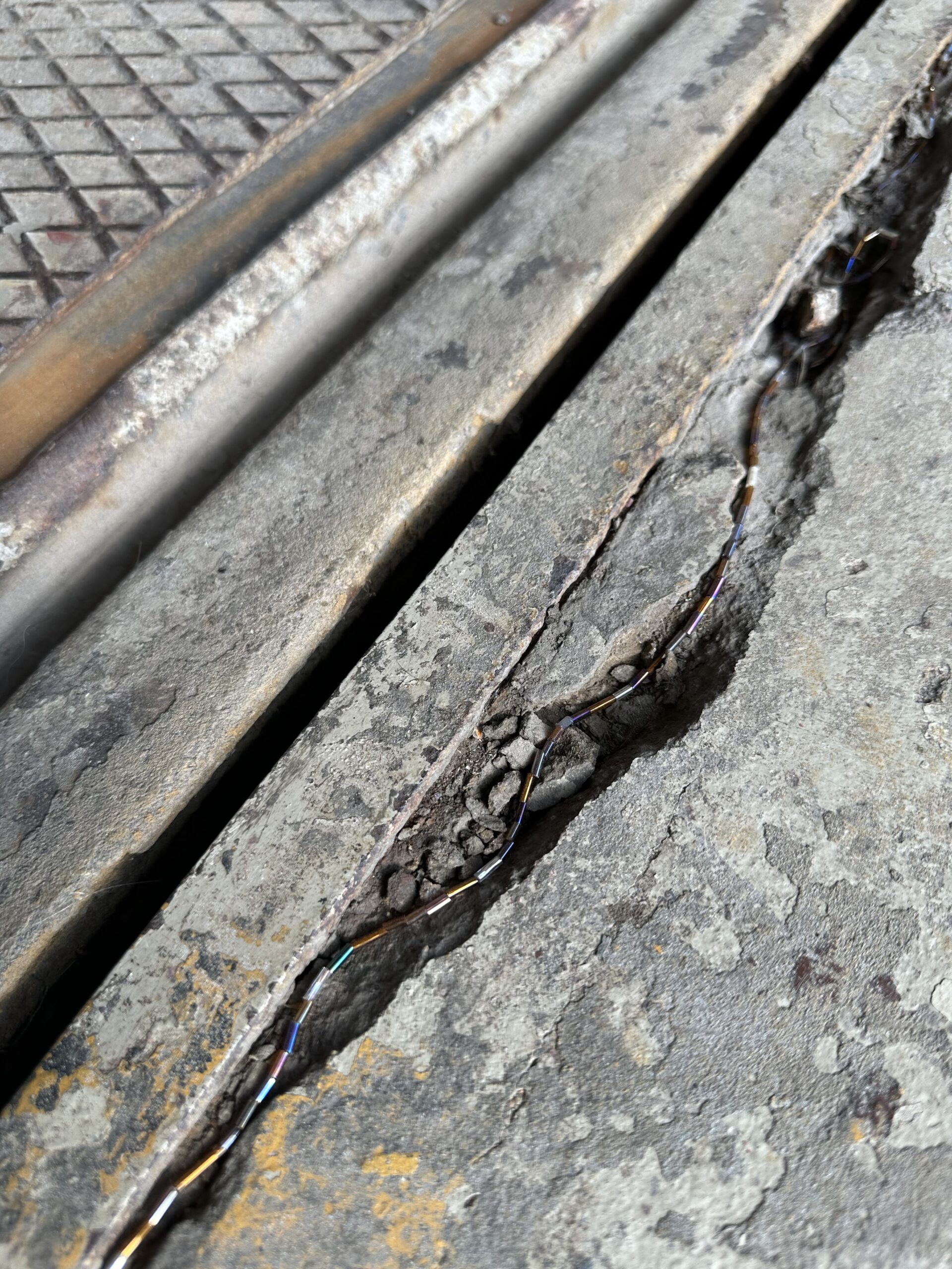 Aleksandra Kuokkanen, Cross Hole, 2025, installaatio; lasihelmet, siima ja hopea